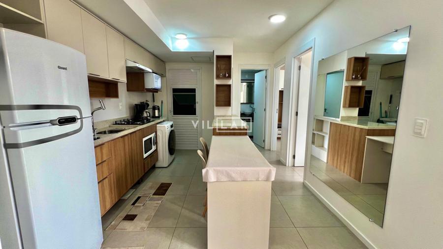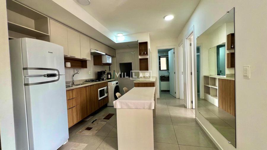 Distribuído em 2 dormitórios, sacada, sala de estar, cozinha americana com área de serviço, sacada e banheiro social.