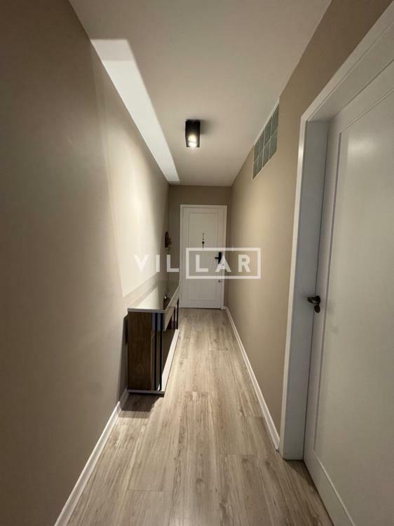 Fechadura eletrônica com senha, pintura nova, piso laminado e porcelanato na cozinha e banheiro.