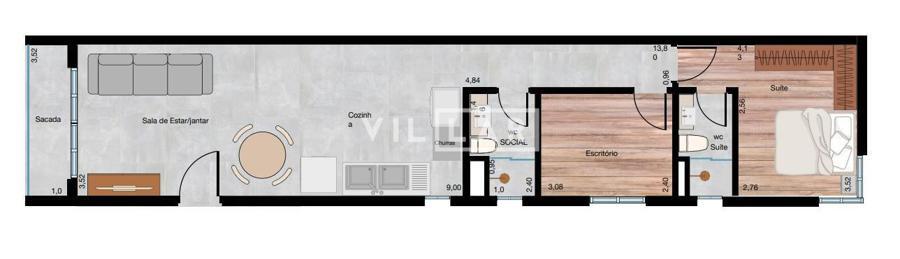 APARTAMENTOS DE 46m² a 77m² ampla sacada com churrasqueira, excelente posição solar, central de gás e espera para ar condicionado.