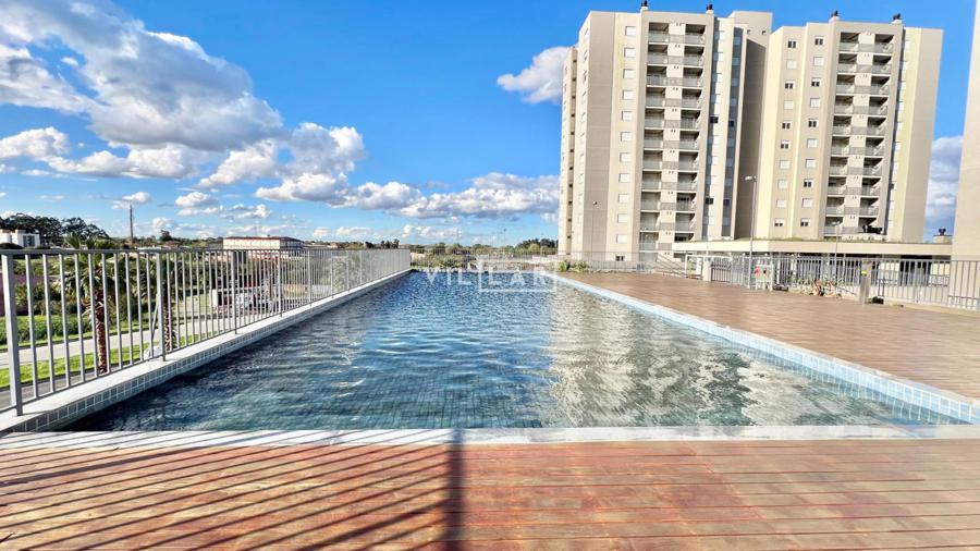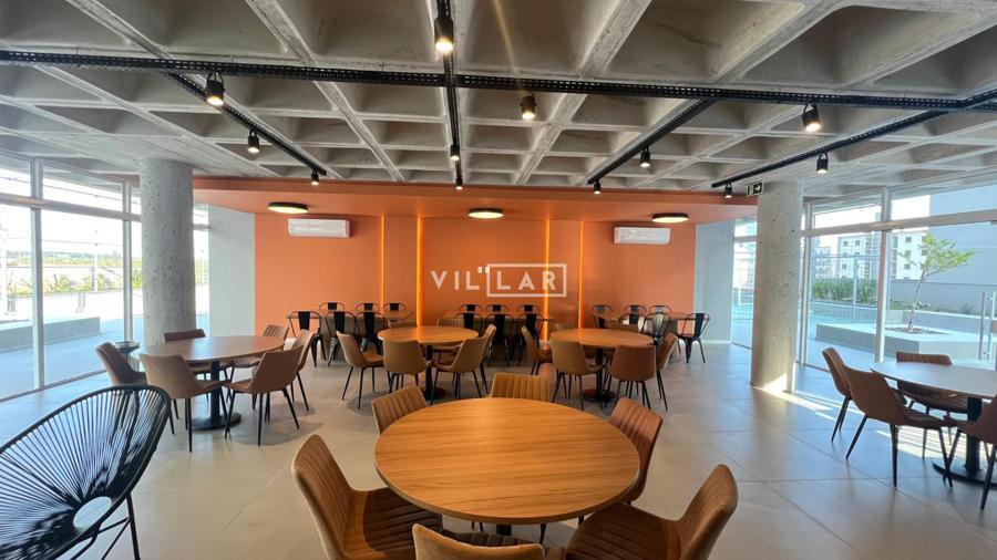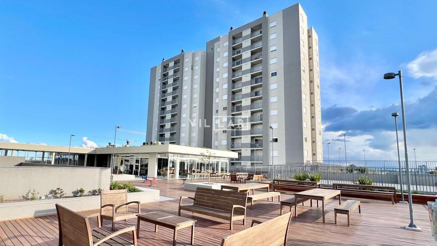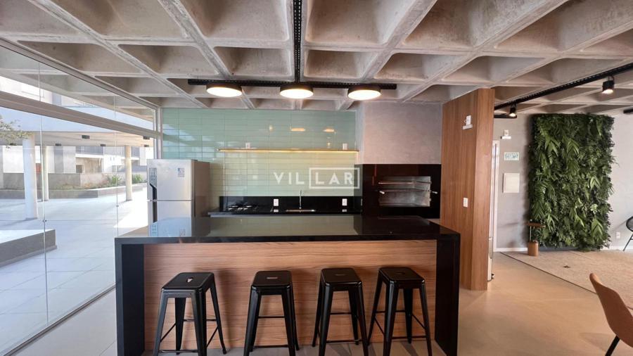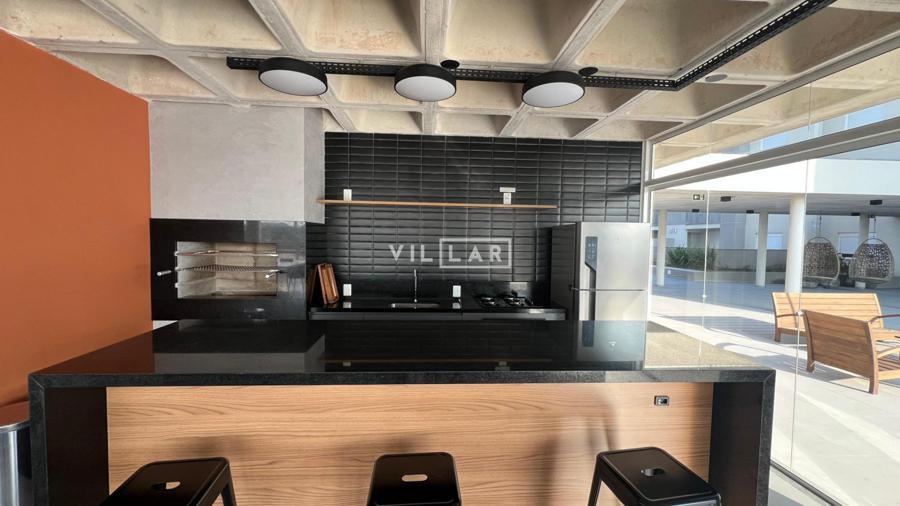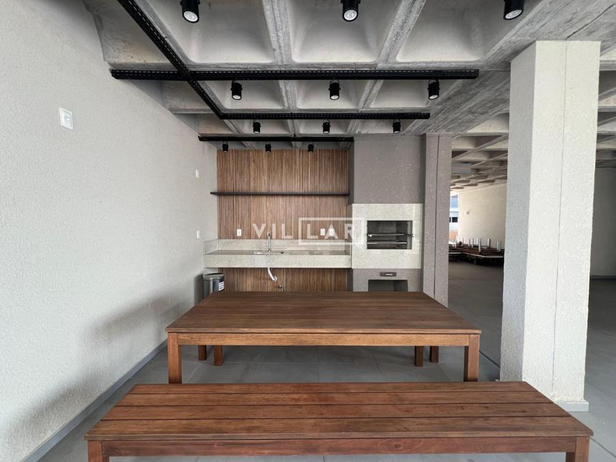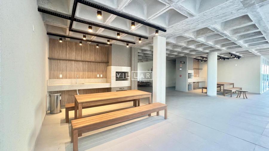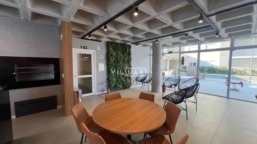 Imóvel com 2 dormitórios, sendo 1 suíte, cozinha, sacada com churrasqueira, sala com ambientes integrados, living, área de serviço.
