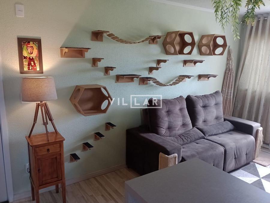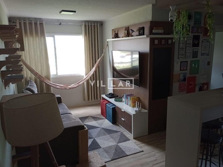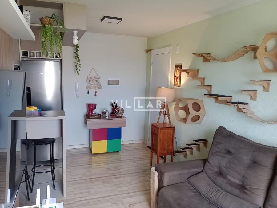 Apartamento impecável no qual conta com 2 dormitórios, sala de estar e janta integrados, área de serviço, banheiro social, moveis planejados e boa posição solar.