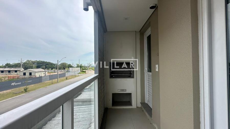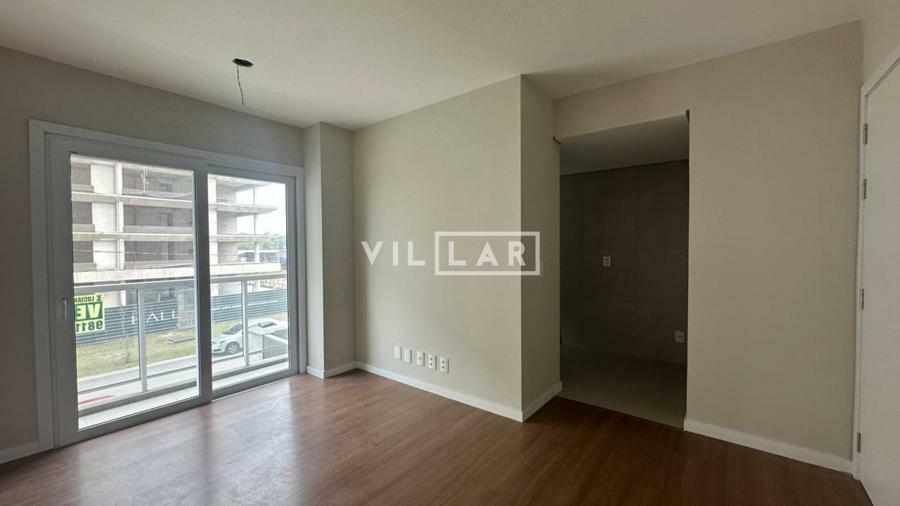 Apartamento com 2 dormitórios, banheiro social, cozinha americana integrada à sala de estar e jantar, sacada com churrasqueira e vaga de garagem.