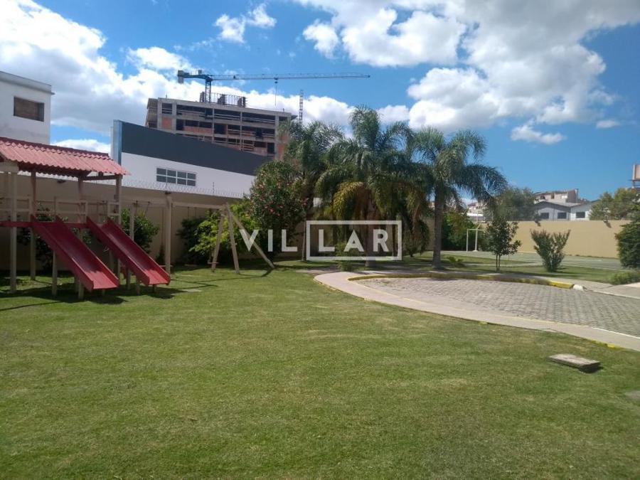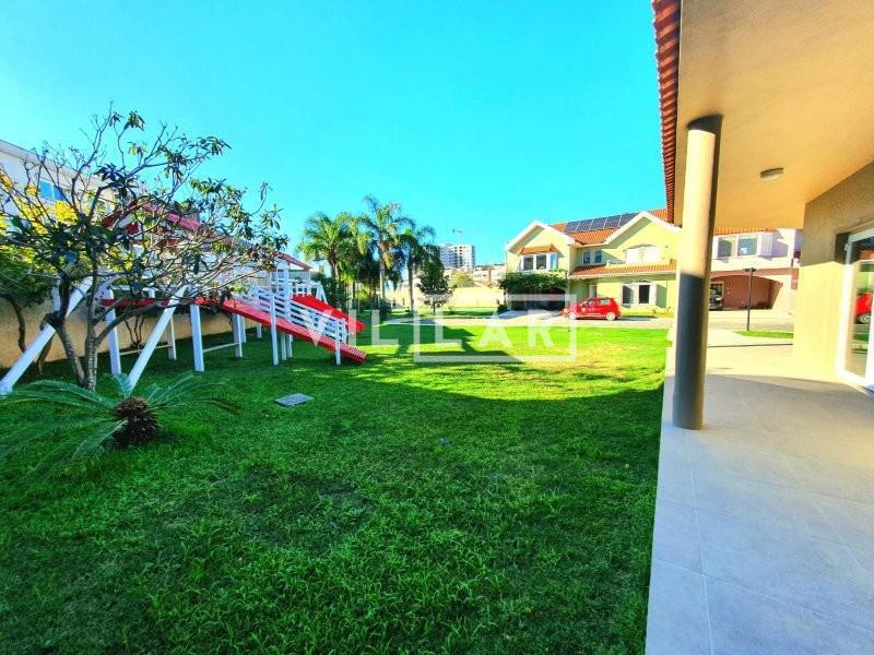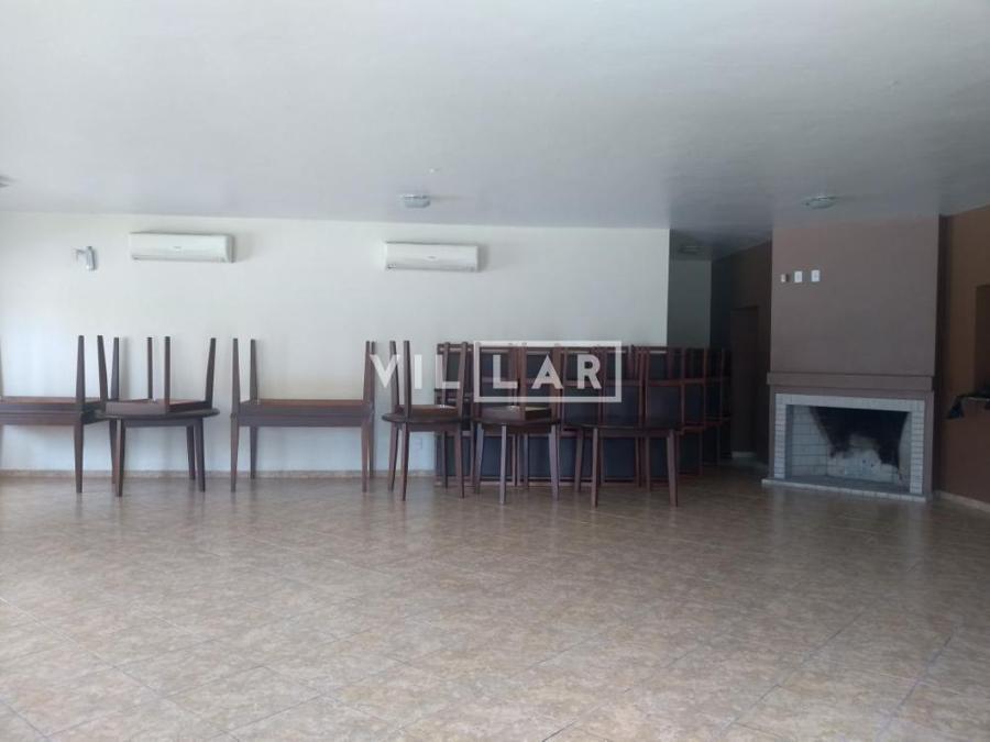 Condomínio com área de lazer, salão de festas amplo com churrasqueira e lareira, quadra de esportes, playground e sistema de segurança com portaria 24 horas.