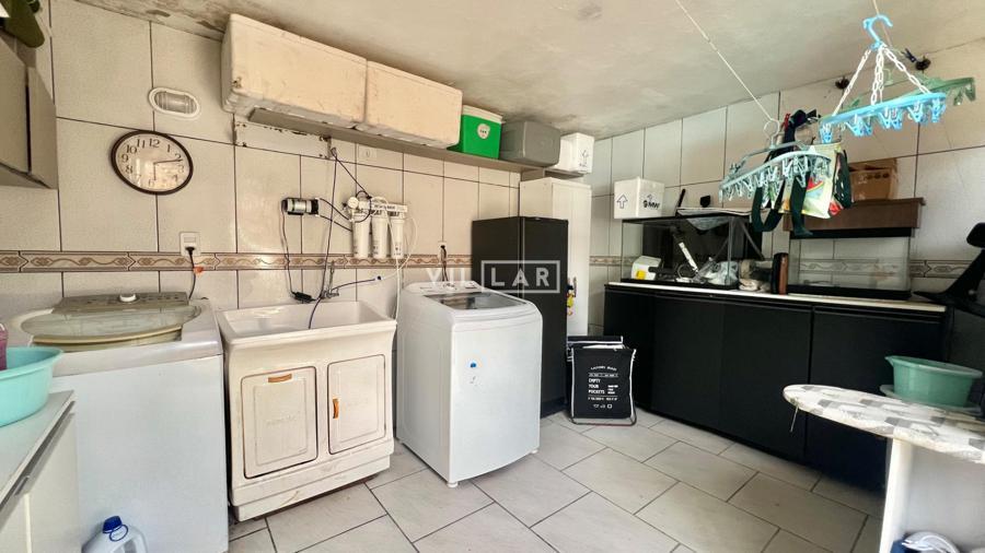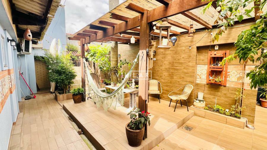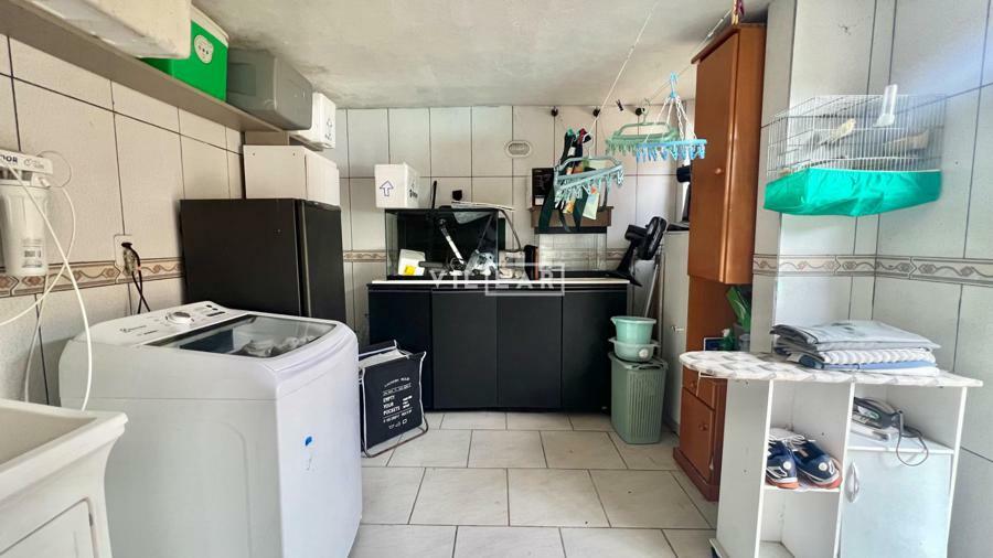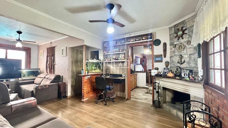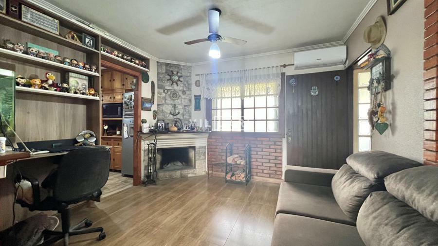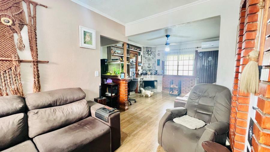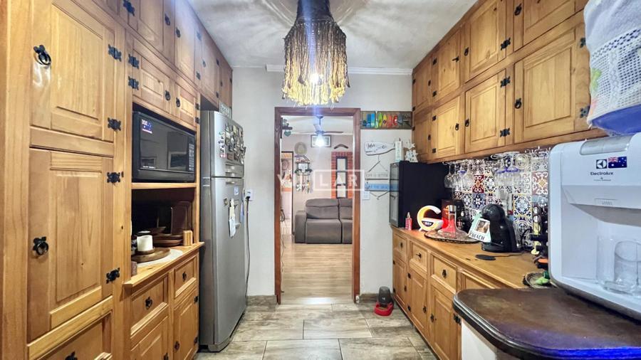 Casa conta com 3 dormitórios, sala com dois espaços, cozinha mobiliada, e garagem para dois carros com Parrilla.