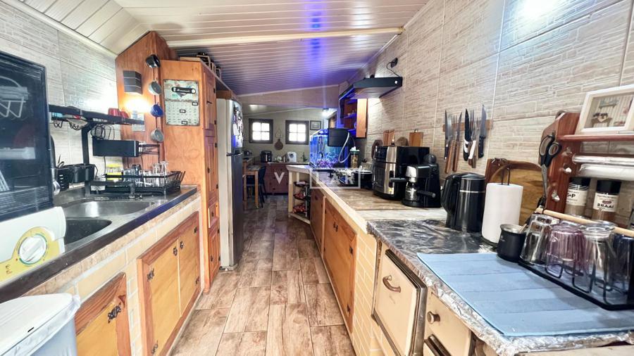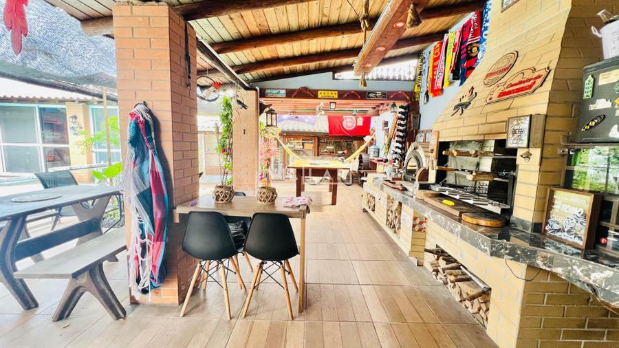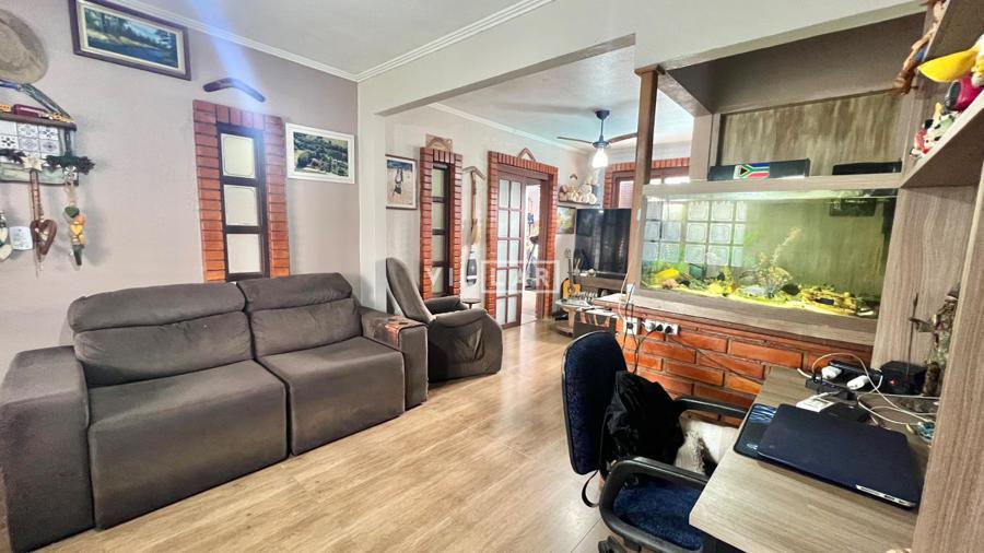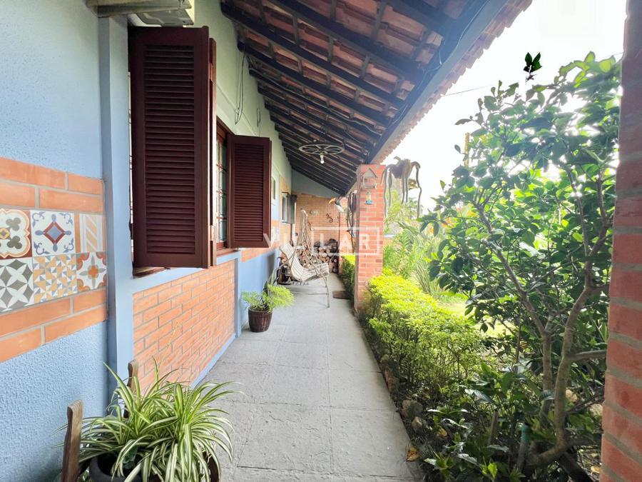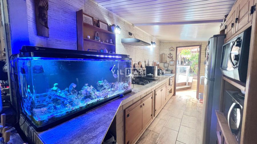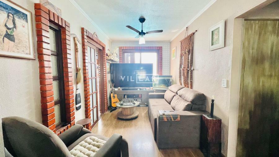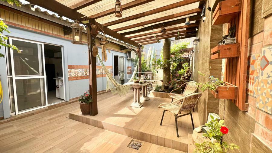 Casa conta com 3 dormitórios, sala com dois espaços, cozinha mobiliada, e garagem para dois carros com Parrilla.