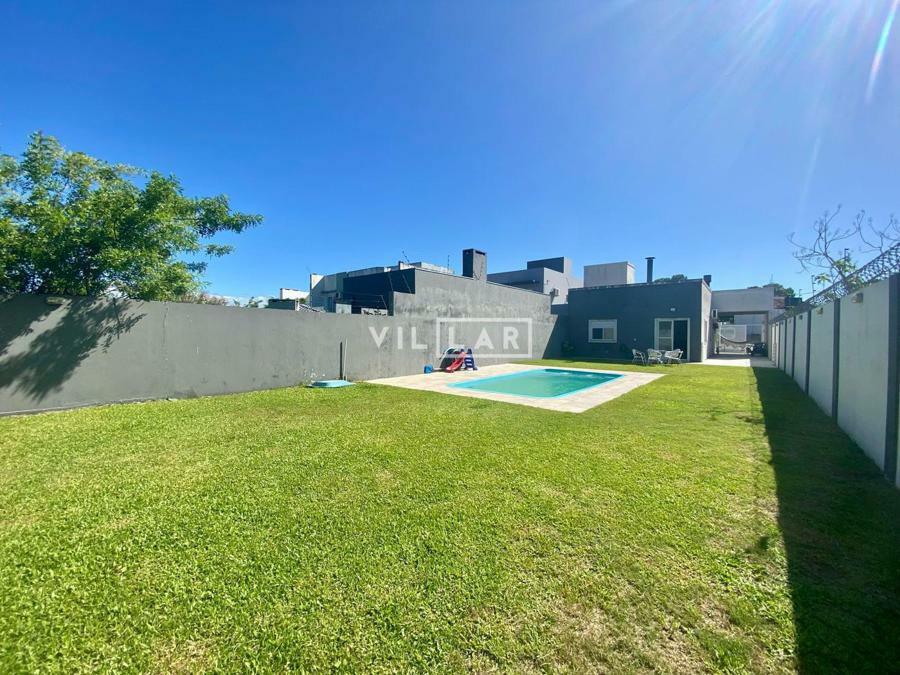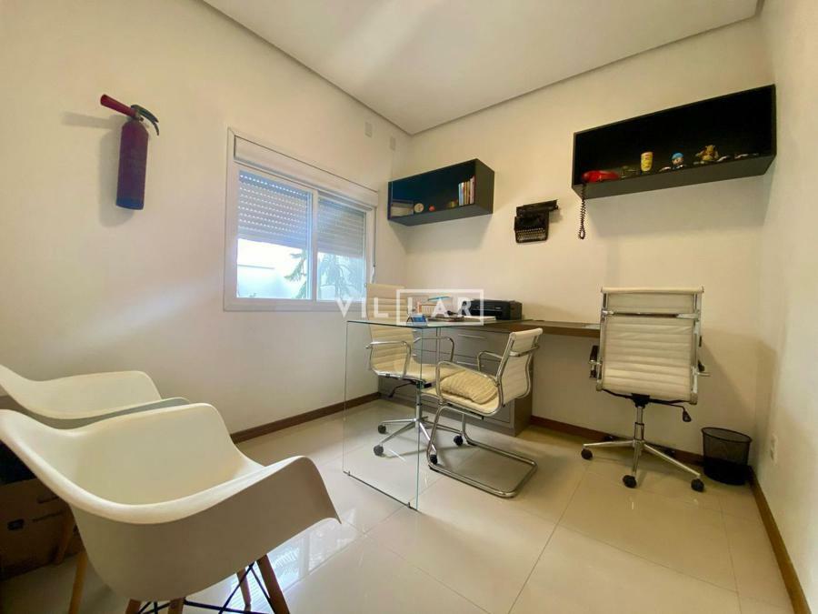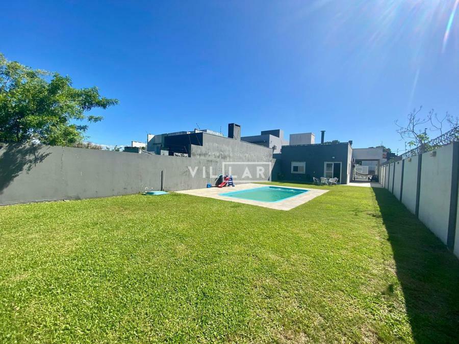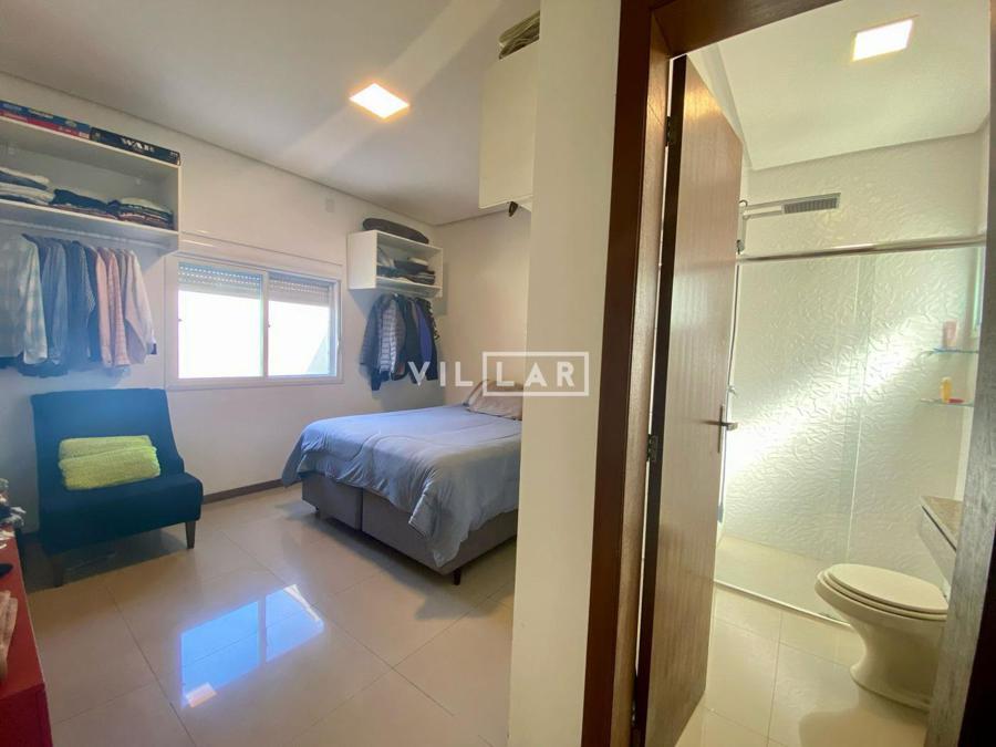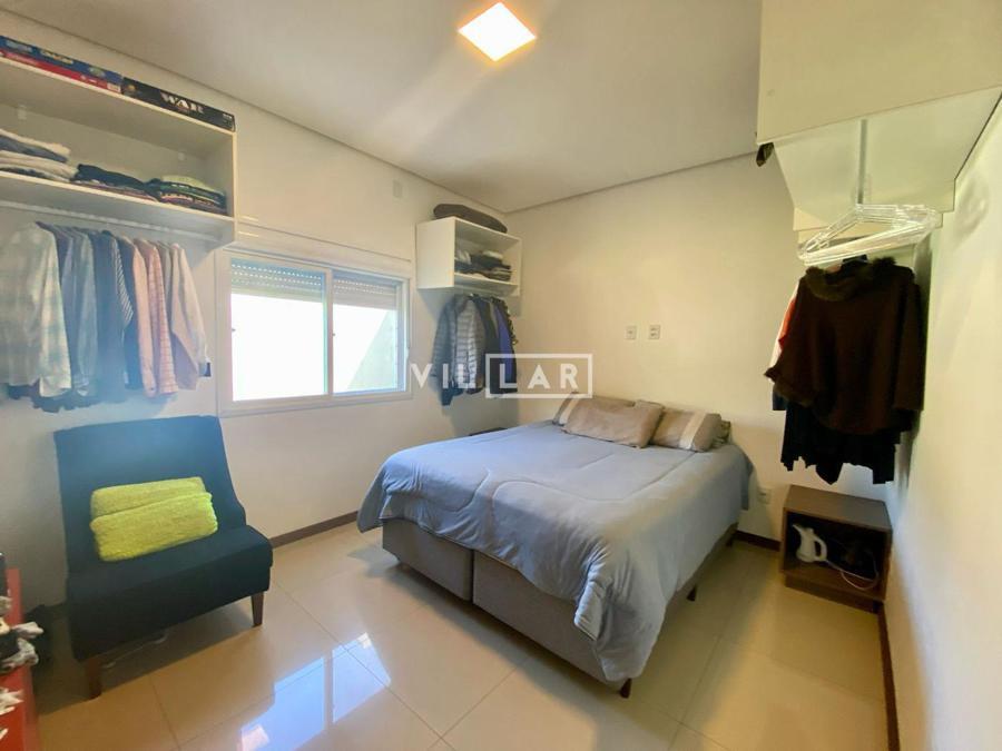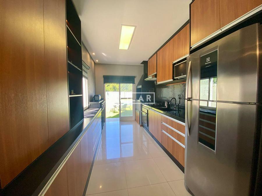 Sala de estar e jantar com lareira, banheiro social, área de luz, cozinha, 03 dormitórios sendo 01 suíte, amplo pátio com piscina e estacionamento para 4 carros.