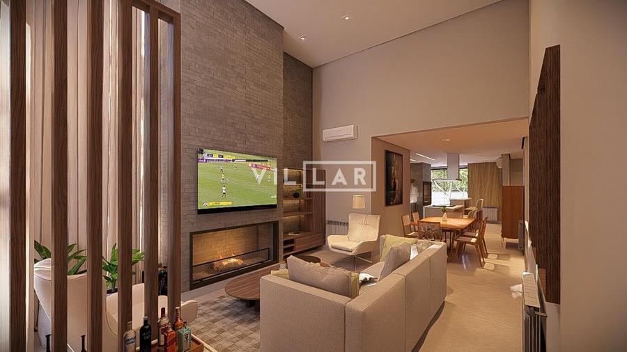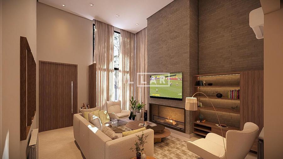 com lareira aconchegante e um imponente pé-direito duplo, que traz amplitude, elegância e iluminação natural;
