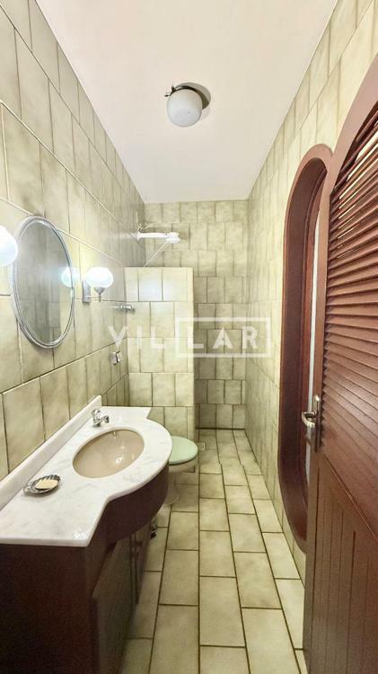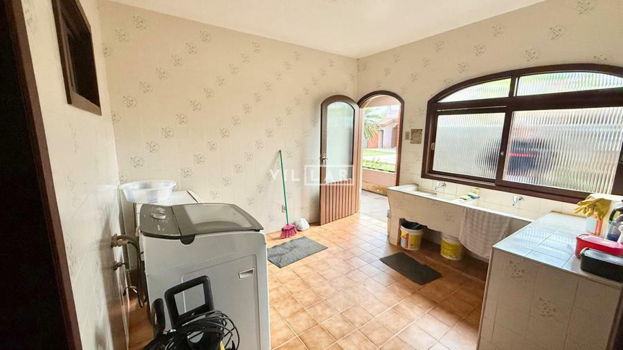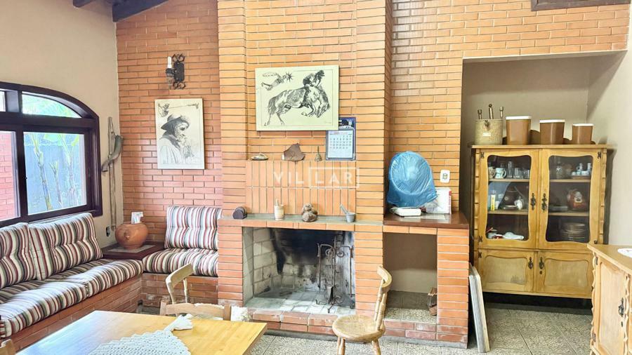 Área gourmet com churrasqueira e lareira, 2 dependências de empregada, lavanderia.