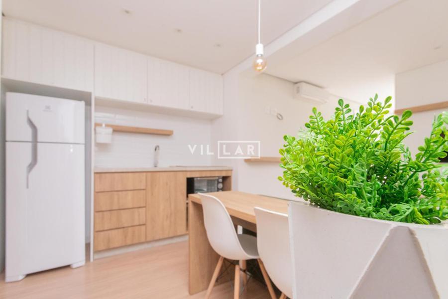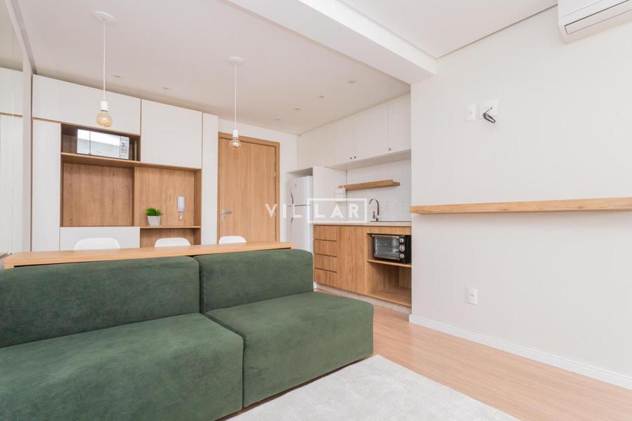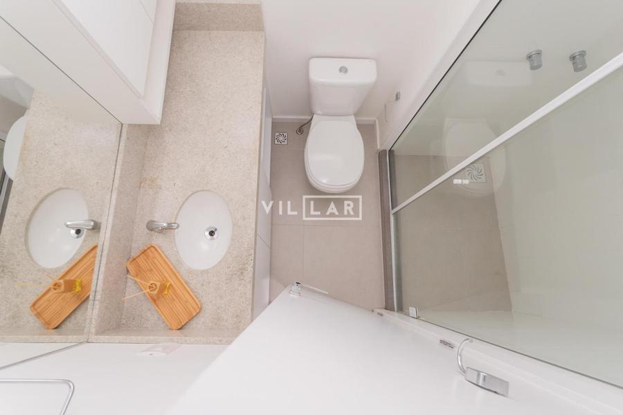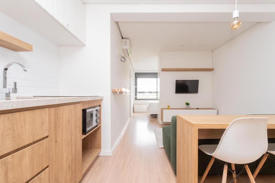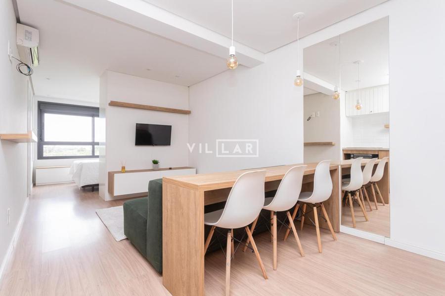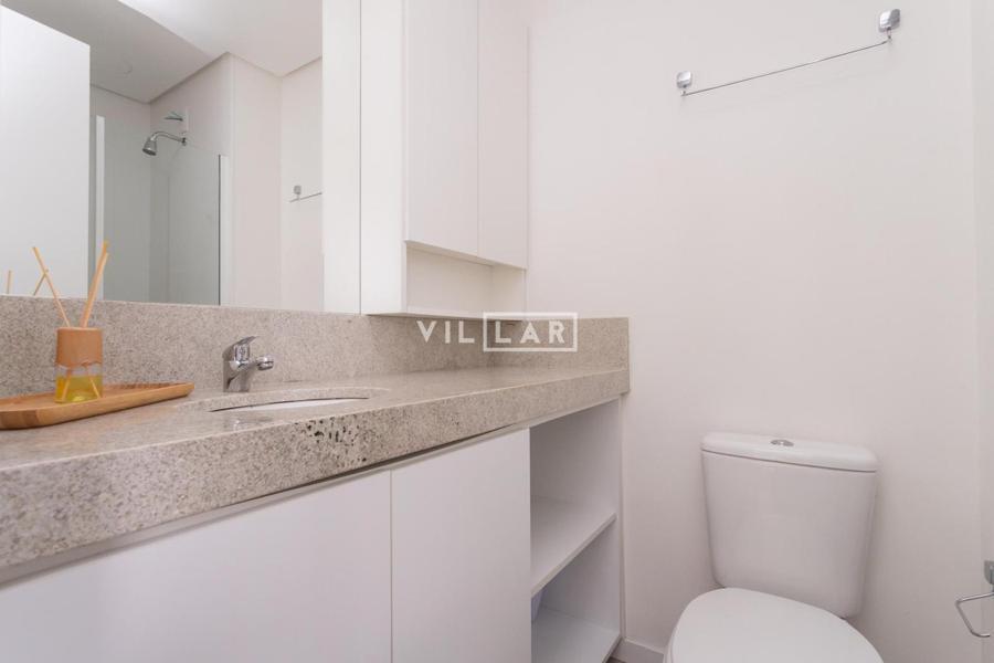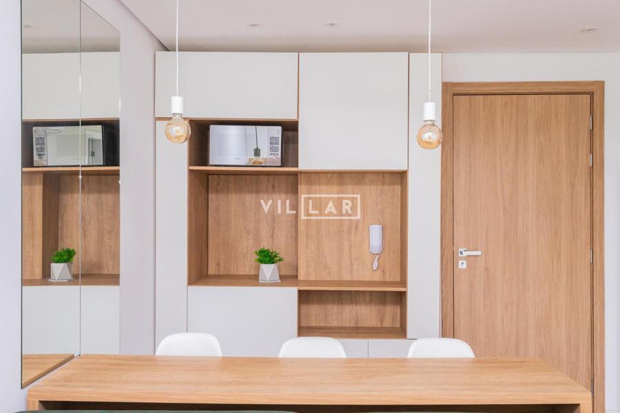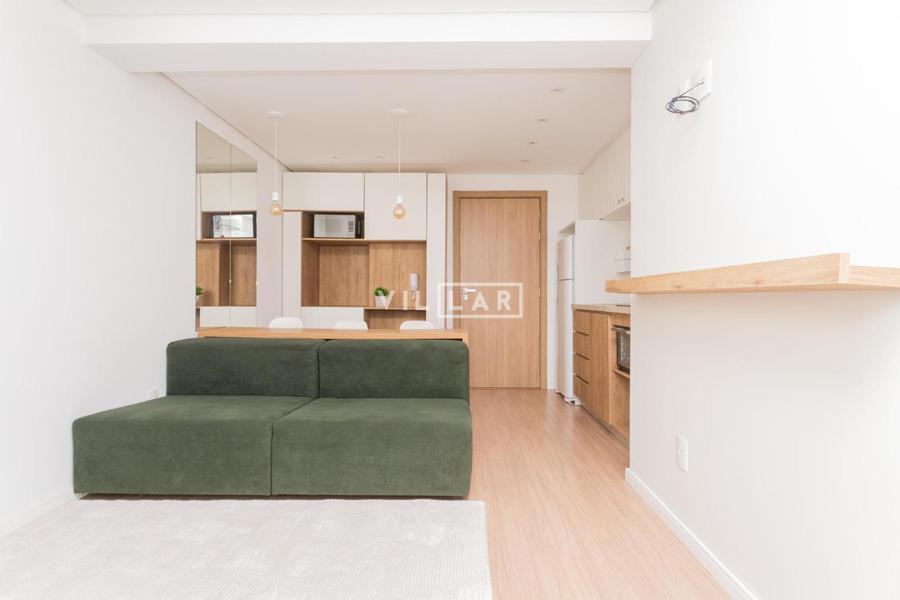 Studio prolongado com banheiro decorado e mobiliado, com vaga de garagem, vista privilegiada e pronto para morar.