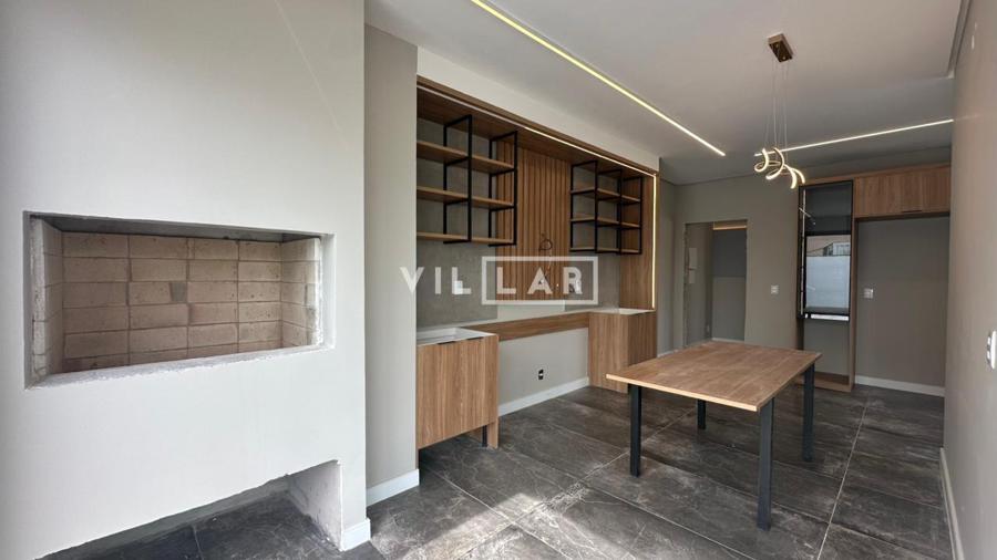A área social encanta pela integração entre a sala de estar com lareira e o espaço gourmet, ideal para receber amigos e familiares.