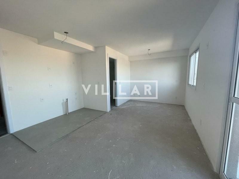 Loft de 35,06m2 com ambientes integrados contemplando sala de estar, dormitório e cozinha.
