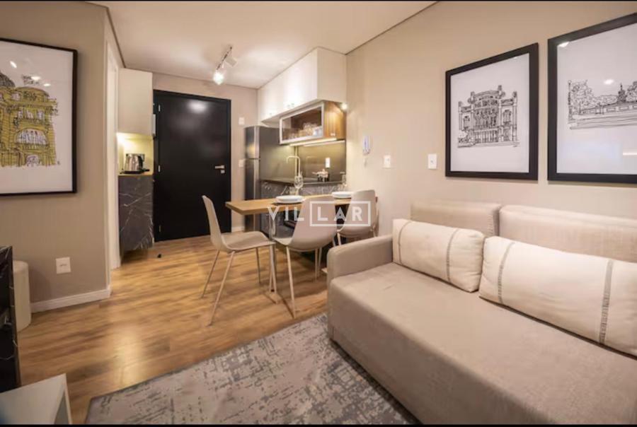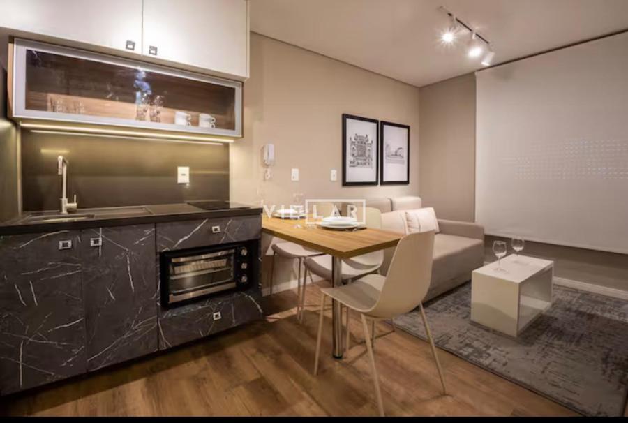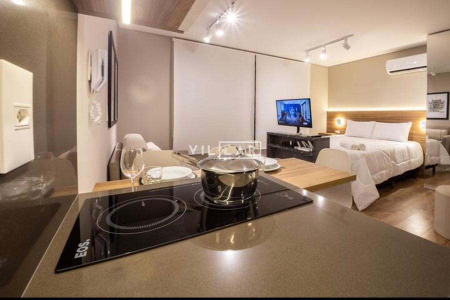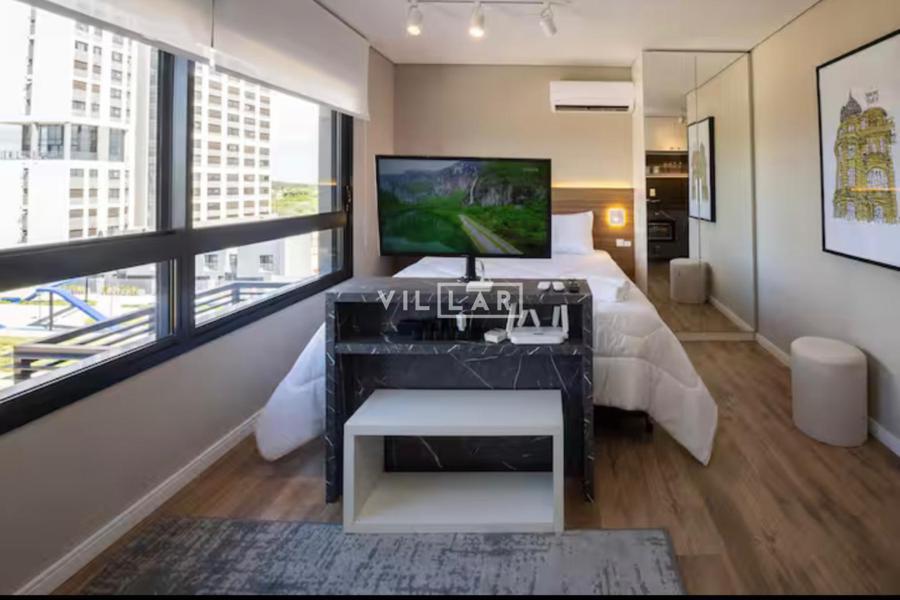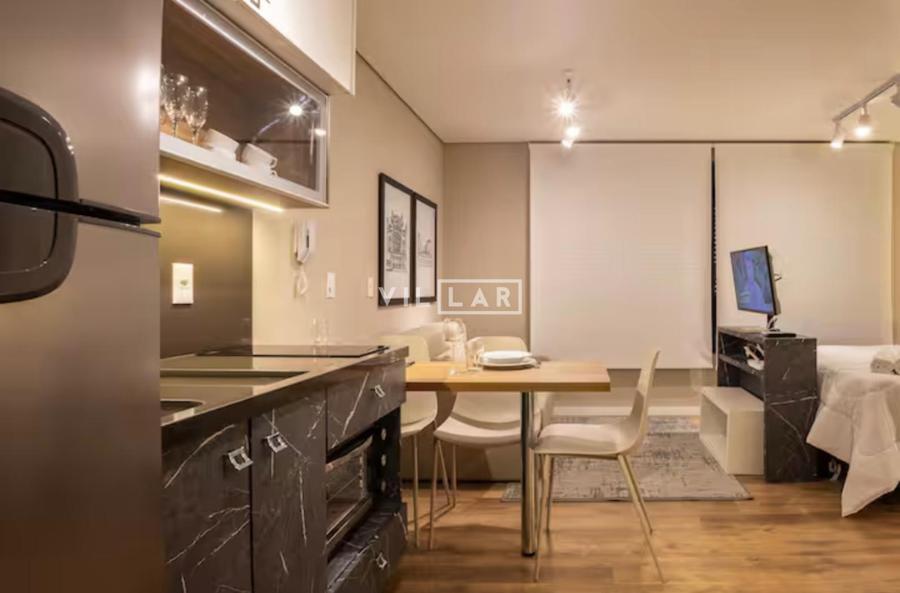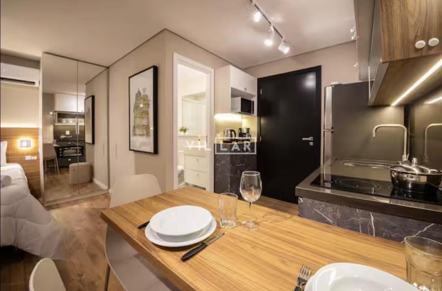 Apartamento tipo loft com 26,51 m2, em ambiente integrado, contando com dormitório, sala de estar, cozinha e banheiro totalmente mobiliado e decorado com móveis planejados de muito bom gosto.