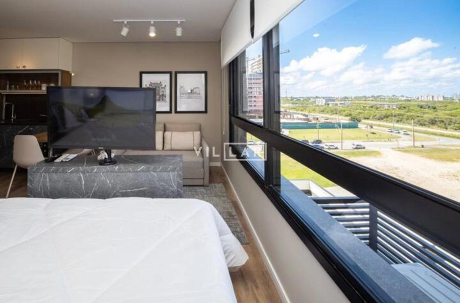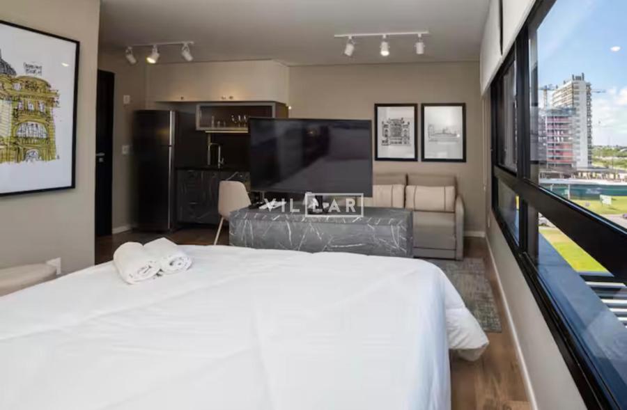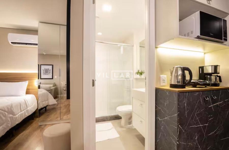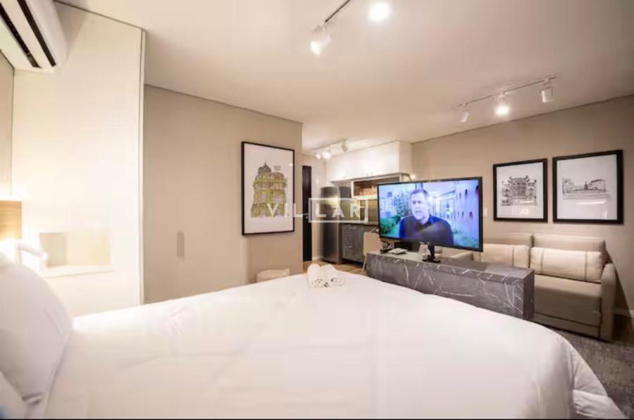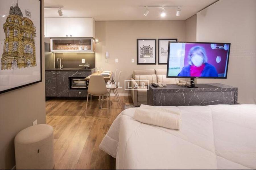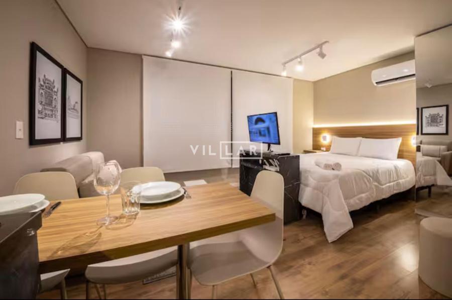 Apartamento tipo loft com 26,51 m2, em ambiente integrado, contando com dormitório, sala de estar, cozinha e banheiro totalmente mobiliado e decorado com móveis planejados de muito bom gosto.